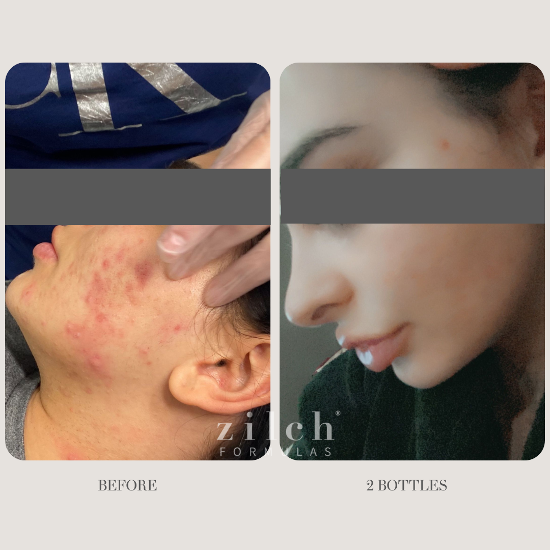my skin has not been this clear in years!! THANK YOU ZILCH. The photos attached are 3 weeks apart :)