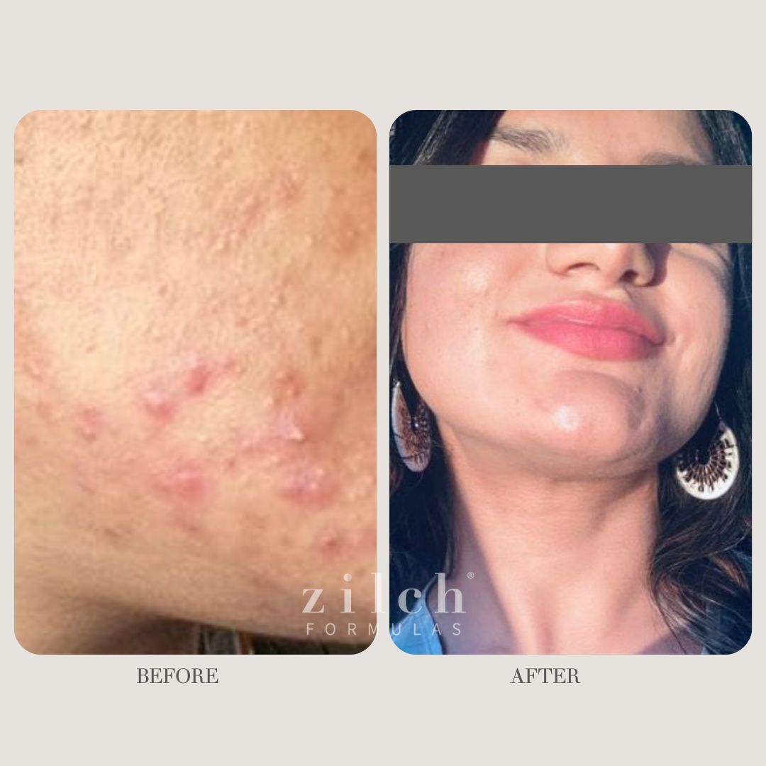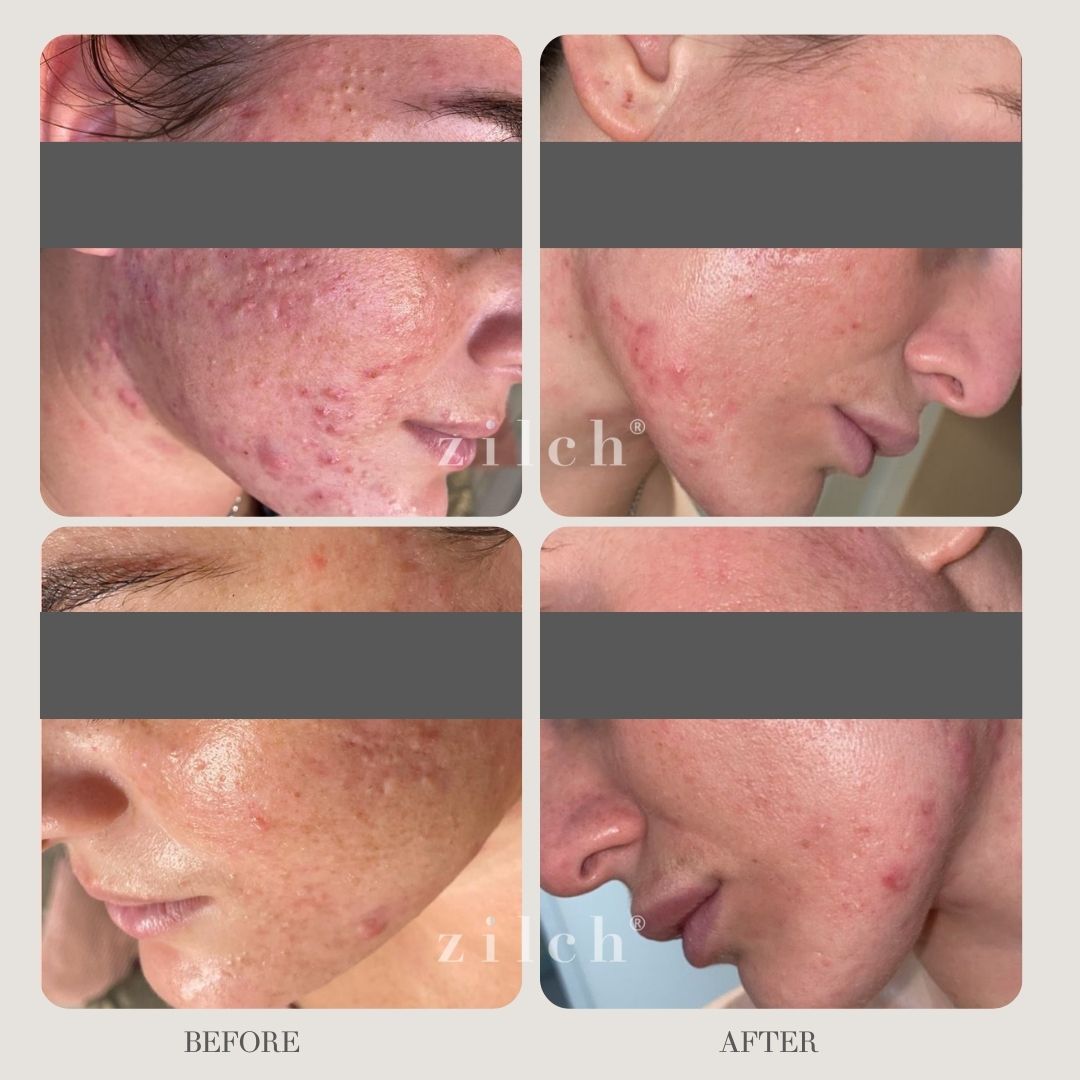 "I had acne on my cheeks and all around my mouth and jawline. Nothing I had tried for the past 3 years had worked. I found Zilch on inst...agram and did a lot of research and saw their amazing results and decided to try them for myself. Not even a week later and my skin was already clearing up. Fast forward a few weeks and my skin was less red, less inflamed and I had no new acne appearing. Just over a month and my acne had completely cleared! With no side effects and after 4 years of painful acne these were the only things that worked for me! They are a little expensive but they work and not only did they clear my skin but they helped my body too."