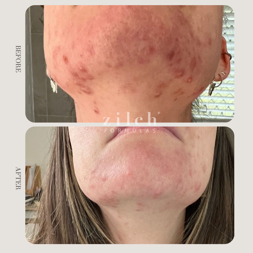 "I had acne on my cheeks and all around my mouth and jawline. Nothing I had tried for the past 3 years had worked. I found Zilch on inst...agram and did a lot of research and saw their amazing results and decided to try them for myself. Not even a week later and my skin was already clearing up. Fast forward a few weeks and my skin was less red, less inflamed and I had no new acne appearing. Just over a month and my acne had completely cleared! With no side effects and after 4 years of painful acne these were the only things that worked for me! They are a little expensive but they work and not only did they clear my skin but they helped my body too."